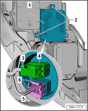 Volkswagen Golf Service & Repair Manual: Removing and installing gas discharge bulb control unit -J343-/-J344-