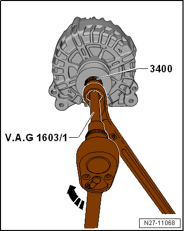 Insert TORX key -V.A.G 1603/1- into alternator shaft. |