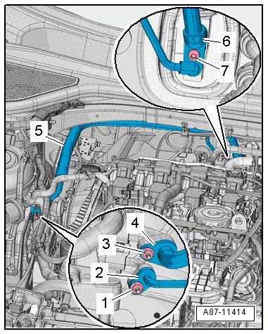 Volkswagen Golf Service & Repair Manual: Removing and installing refrigerant line between air conditioner compressor