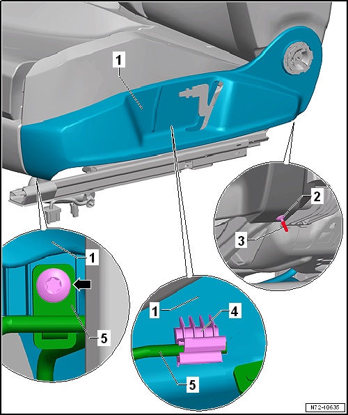 Volkswagen Golf Service & Repair Manual: Removing and installing seat trim on sill side, standard seat