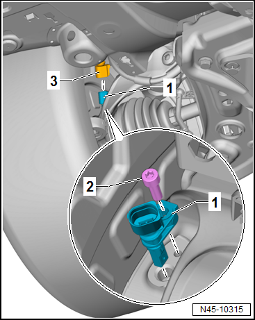 Volkswagen Golf Service & Repair Manual: Removing and installing speed sensors on front axle -G45-/-G47-