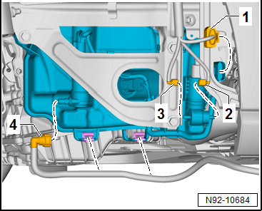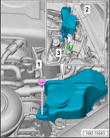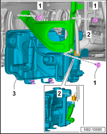 Volkswagen Golf Service & Repair Manual: Removing and installing washer fluid reservoir, »R«