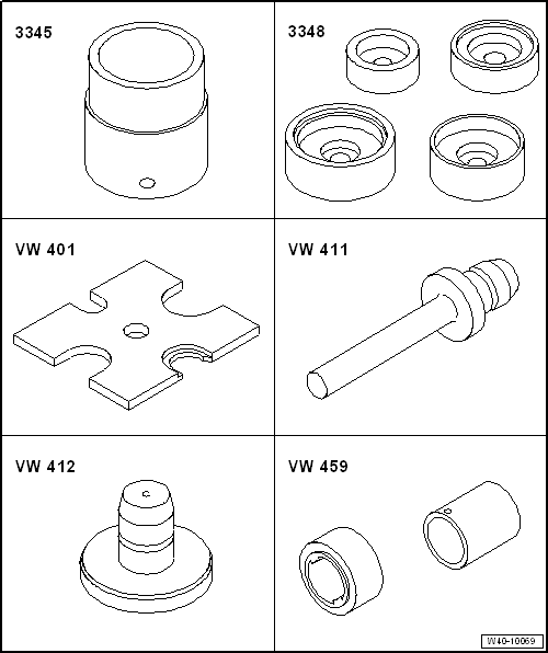 | Press in bonded rubber bush until wheel bearing tube -3345-