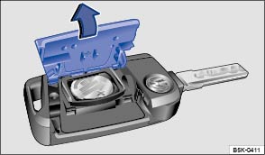 Fig. 25 Vehicle key: opening the battery case cover