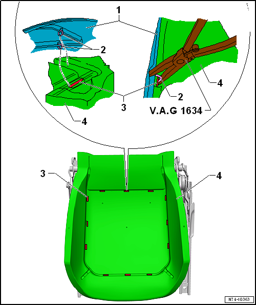 Use upholstery clip pliers -V.A.G 1634- for this. |
