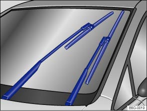 Place the windscreen wiper arms back onto the windscreen before driving away. With the ignition switched on, briefly press the windscreen wiper lever down to bring the windscreen wiper arms back to the original position.