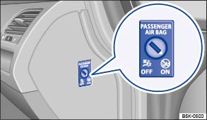 Fig. 72 In the dash panel on the front passenger side: key-operated switch for switching the front passenger front airbag on and off