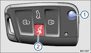 The remote control transmitter and the battery are integrated in the key. The receiver is located in the vehicle interior. The remote control range is several metres around the vehicle when the battery is fully charged.